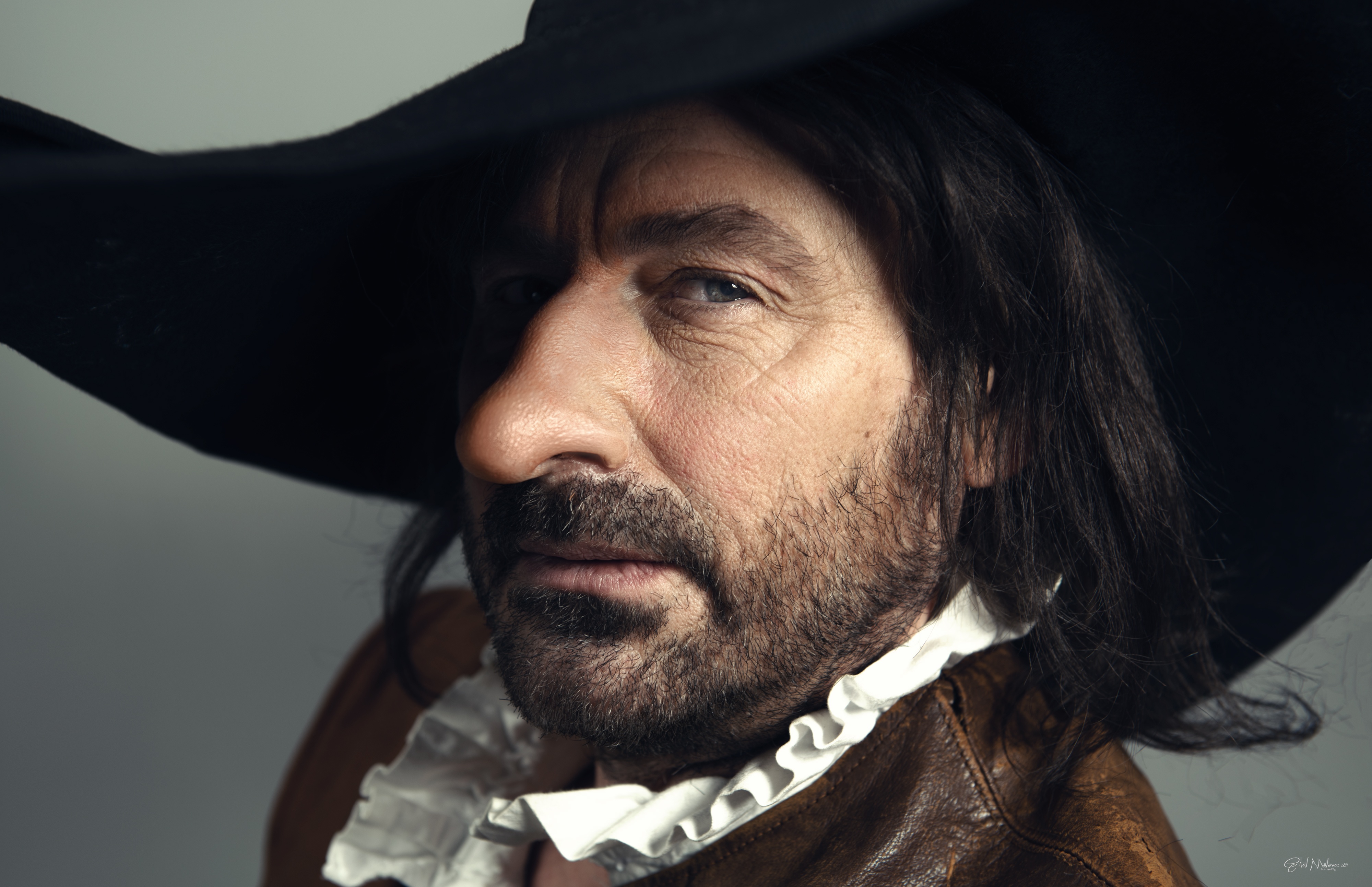 Oui, l’œil ne cesse d’être frappé par bien d’autres costumes encore ! Sur scène, comme Edmond Rostand le souhaitait, ainsi que feuilles au vent, une foule de bourgeois, marquis, mousquetaires, tire-laine, poètes, cadets, gascons comédiens, violons, pages et précieuses… Ils sont si pittoresques, agrémentés de notes anachroniques, comme surgis d’une improbable montgolfière, les époques se mélangent. Vive l’imaginaire ! Voici même un admirable Trissotin, des perruques qui s’envolent, et autres délirantes coiffures façon Tampon-Jex. On reconnait Cédric Cerbara et ses rôles annexes, une Béatrice Ferauge alternativement Duègne compassée et coquine Sœur Marguerite ! Tous comédiens exaltants – excusez du masculin ! – une fabuleuse équipe et Olivier Francart qui joue Lignière.