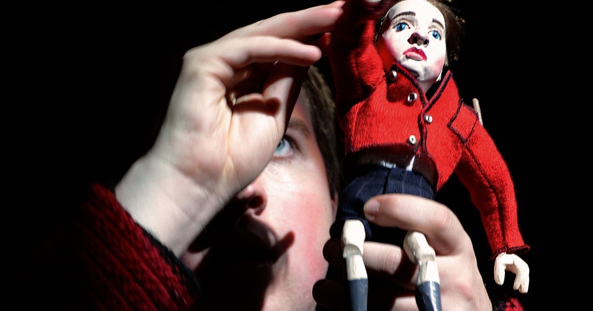 Sur un large plateau brumeux se mêlent sans distinction scènes de la vie familiale, extraits de contes et rappels d’événements historiques dont les répercutions affecteront la vie personnelle et philosophique des protagonistes. Le jeu de lumière, l’ambiance sonore et l’usage constant de marionnettes, figures emblématiques de l’enfance que la troublante ressemblance avec les acteurs teinte d’étrangeté, donnent à l’ensemble une atmosphère onirique, presque fantasmagorique. Par dessus les rires, la colère et la peur, un sentiment d’inquiétante étrangeté vient napper la pièce : l’Unheimliche, si cher aux frères Grimm.
