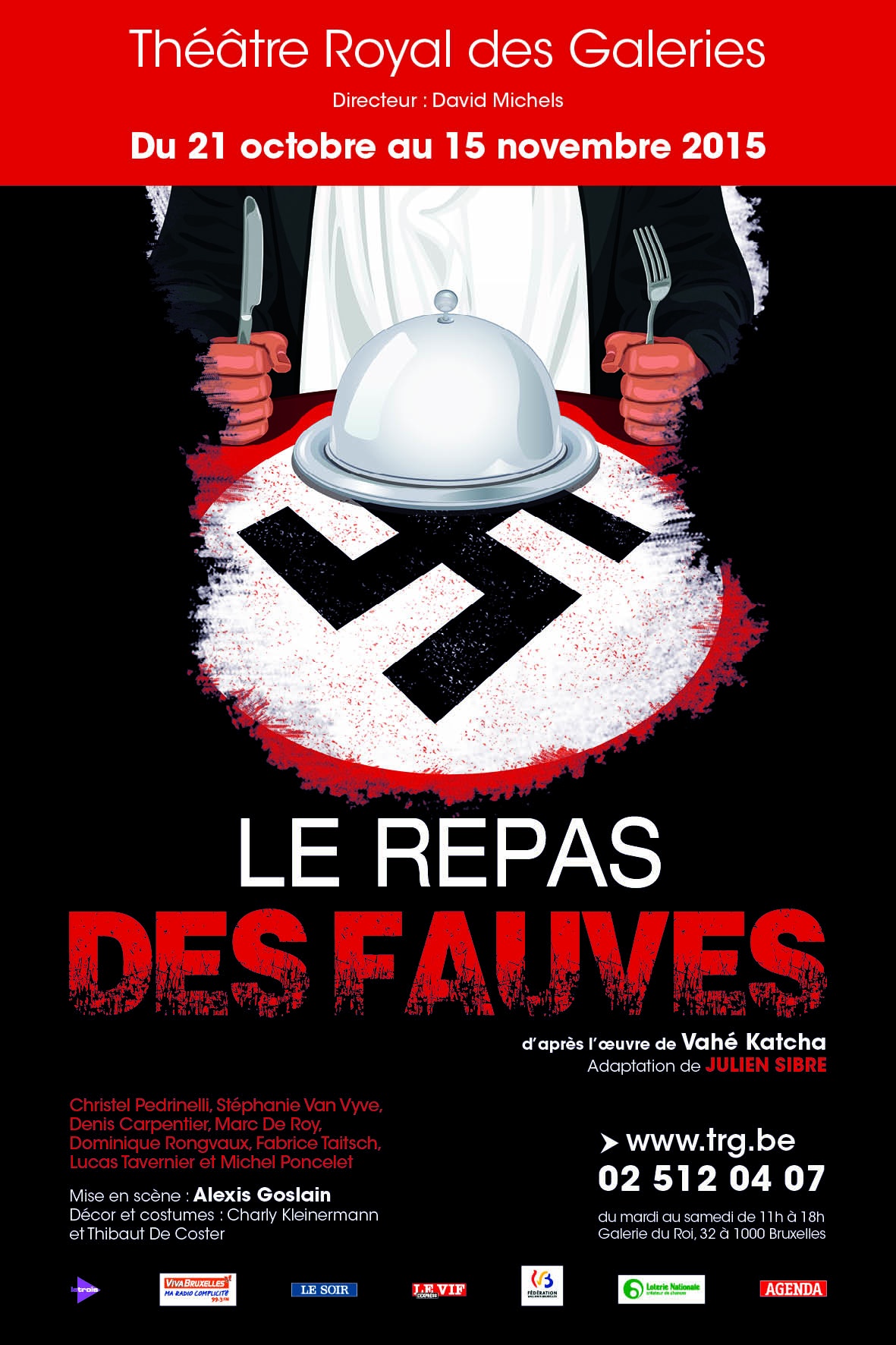 Le spectacle a été joué à Bruxelles en 2012, au Centre Culturel d’Auderghem, récoltant un très franc succès. Déjà joué plus de 600 fois, le revoici sous la griffe d’Alexis Goslain au Théâtre des Galeries en décors d’époque, avec une très brillante distribution de comédiens rôdés aux comédies de boulevard. Le sujet est pourtant grave. Et le défi de faire rire dans un contexte aussi tragique relève de la prouesse, car dans ce jeu difficile, la faute de goût guette chacun des gestes des acteurs, chacune de leurs intonations. Comment rester crédible, ne pas surjouer des rôles qui frisent la caricature ? Le festin des fauves sera-t-il un dîner parfait ? Un régal théâtral très applaudi dès la première, en tous cas. Avec Christel Pedrinelli, Stéphanie Van Vyve, Denis Carpentier, Marc De Roy, Dominique Rongvaux, Fabrice Taitsch, Lucas Tavernier et Michel Poncelet. Une équipe et un travail exemplaires.