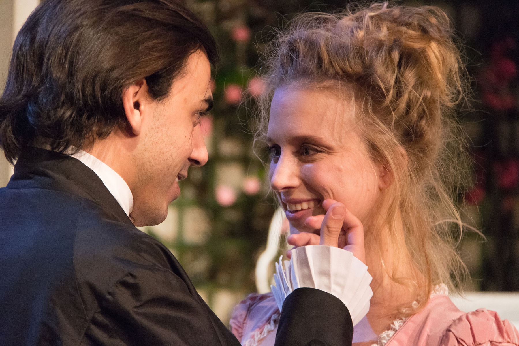Mais, si le délicieux Dorante (Jules Churin, qui lui résisterait ?) a eu le coup de foudre et meurt d’amour pour une prétendue femme de chambre nommée « Lisette », la joueuse et vindicative Silvia ne laissera tomber son masque de domestique que lorsque Dorante, ayant eu l’imprudence (?) et la franchise de lui avouer son identité, ira jusqu’à la demander en mariage malgré son statut de domestique et après avoir même dû essuyer …les affres de la jalousie ! C’est ici, que Marivaux pousse à l’extrême le marivaudage, c’est-à-dire, non vraiment ce que l’on entend par badinerie, mais le plaider le faux pour savoir le vrai ! Car voici que Mario, le frère de Sylvia, lui aussi pousse le jeu en déclarant tout à coup qu’il est amoureux de « Lisette » et prétend être son amant ! Un Abel Tesh de haut vol et de haute stature ! Quelles tempêtes sentimentales, quels quiproquos, quelles manipulations… c’est la société entière qui est dépecée sous le scalpel de Marivaux, l’anatomiste !
