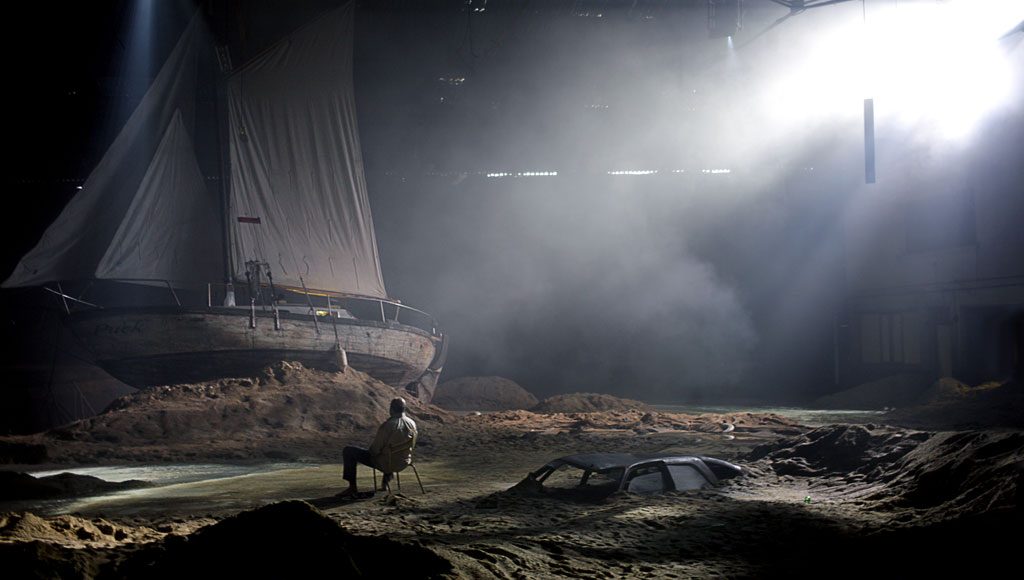 Il y a également - soulignons la prouesse - une marée plus vraie que nature qui vient lécher les carcasses et transforme soudain la scène en plage de naufrage. L’effet est fantomatique et saisissant.