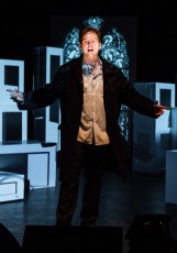 Sur les planches, quelques formes claires et obscures à la fois, mises en lumière et métamorphosées par du mapping vidéo, un art complexe qui consiste à projeter des animations visuelles en relief sur des structures 3D. Ces images, toujours en accord avec le thème de la ville, font résonner les mots du poète de manière visuelle, comme un envoûtement, une hypnose. Il est difficile de détacher le regard de ces formes qui fondent, brûlent et se reforment, se redressent comme autant de gratte-ciels.