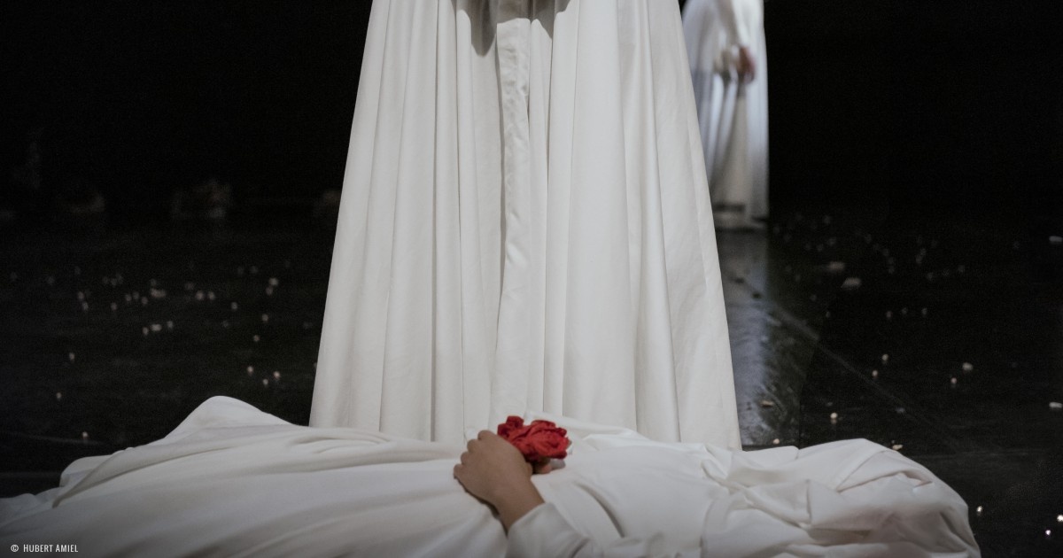 Une mère cherche son enfant dans le jardin de la mort. Pour le trouver, il lui faudra faire des sacrifices : ses yeux, ses cheveux. La musique composée par Khaled Omran parfois angoissante, parfois hypnotique, fait partie intégrante du spectacle et le costume des acteurs fait penser à celui des derviches tourneurs : une longue robe blanche très évasée.